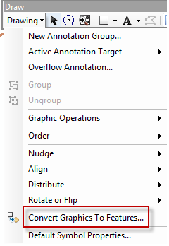 - Clique na barra draw, no botão “Drawing”. Clique em “Convert Graphics To Features.”